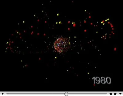 In this animation, catalogued space debris are shown accumulating around Earth in 4-year increments, including payloads, rocket bodies, and fragments. While the debris objects are not shown to scale, the representation of their density is accurate.