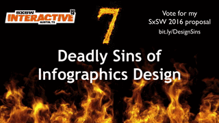 SXSW 2016 Interactive PanelPicker voting is now open, and I need your votes! My talk proposal entitled "7 Deadly Sins of Infographics Design and How to Fix Them" will explore examples of the top seven mistakes designers often make, and more importantly, offer design tips to overcome these common design blunders. Follow the steps below to vote: