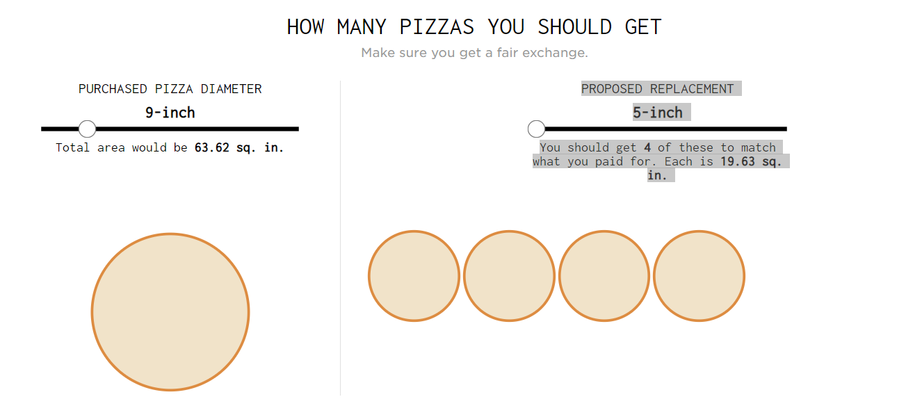 This is a story about pizza and geometry. Roy Chandan ordered a 9-inch pizza, and the waiter brought him two 5-inch pizzas instead. Chandan was getting an inch for free, the waiter said, to which he replied…